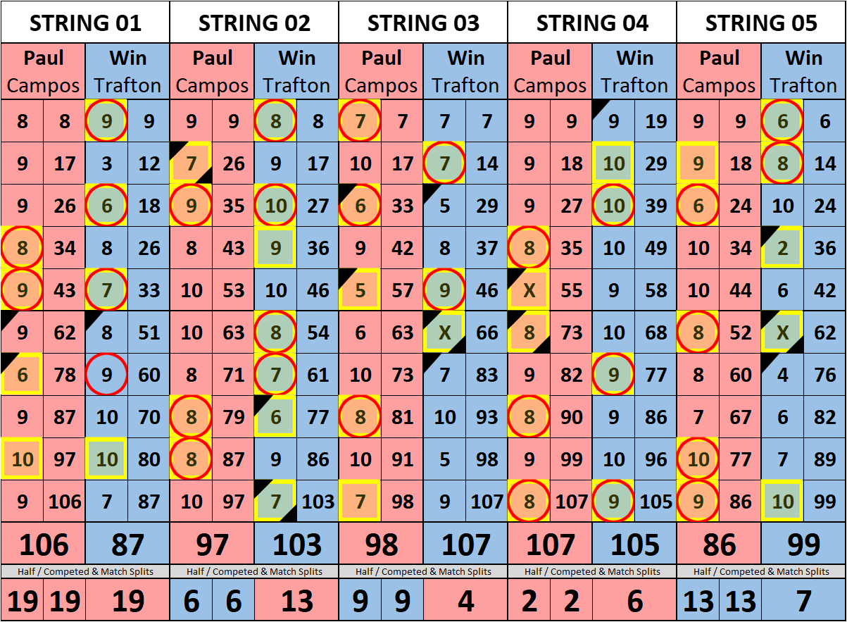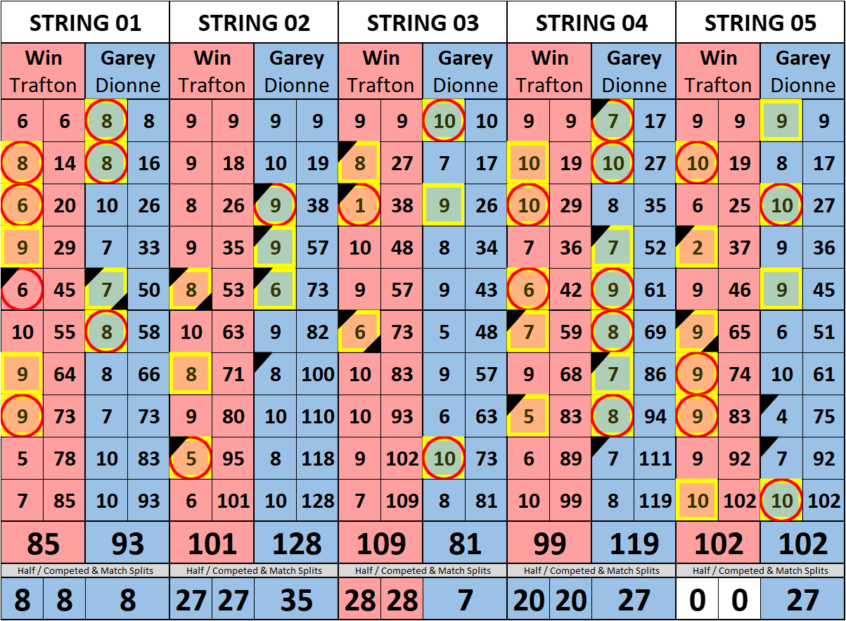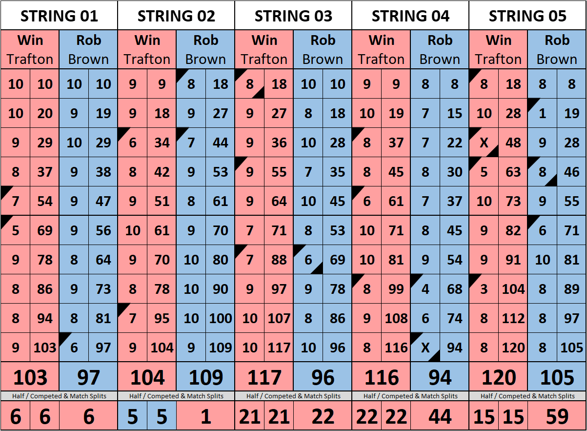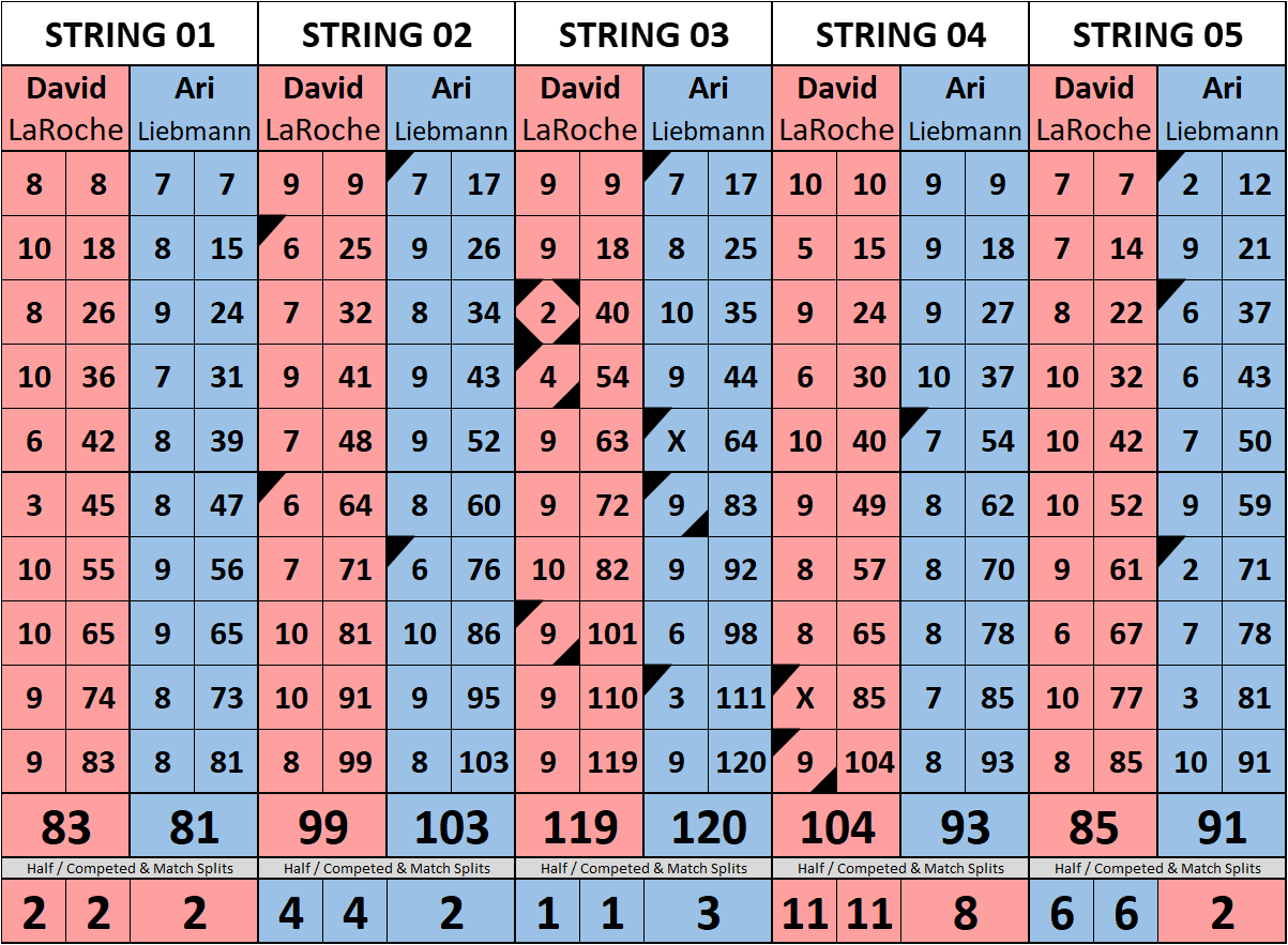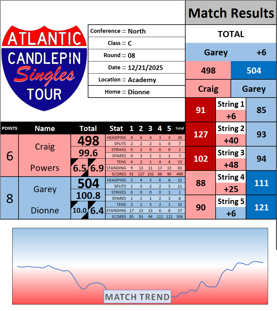 Browse the folder structure below to see all of the scoresheets – each is presented as two files, -1 and -2 where -1 is the Match Summary and -2 is the Scoresheet. All matches are separated by conference (North, South, West), and class (A, B, C, D, E). They are then sorted by Round # and named after the Home Bowler.