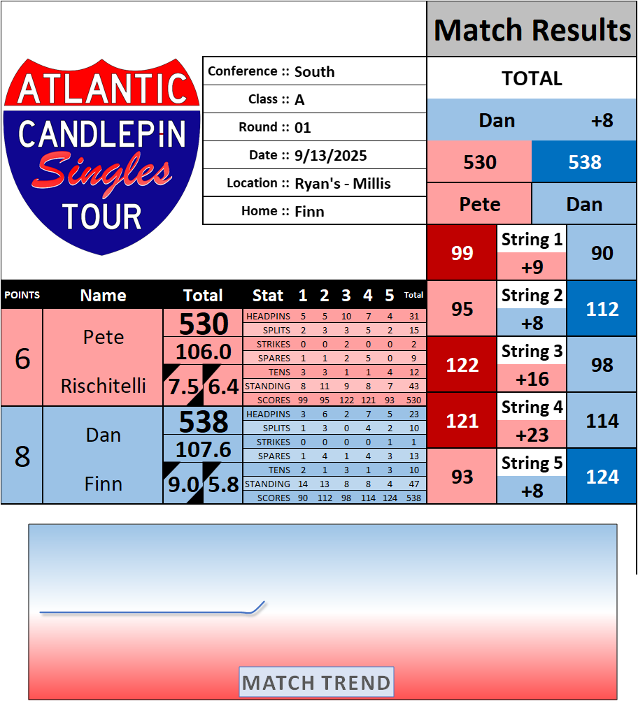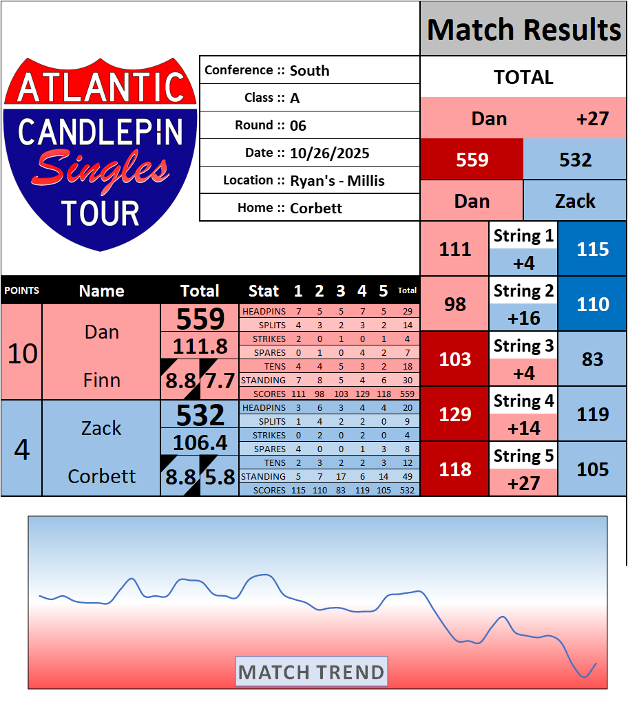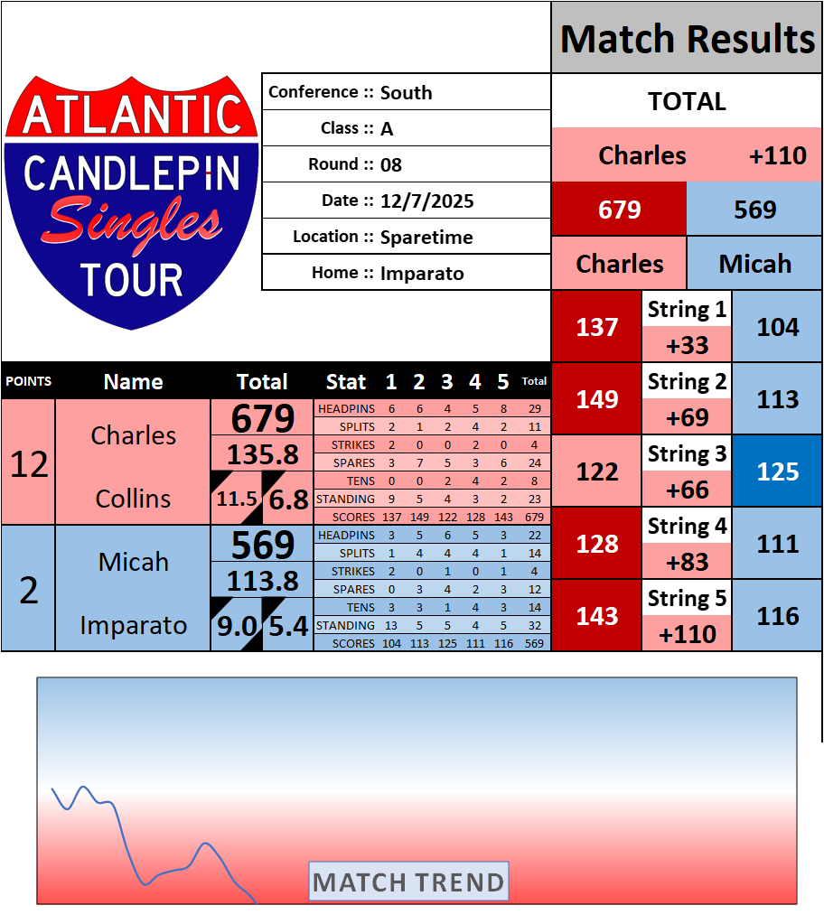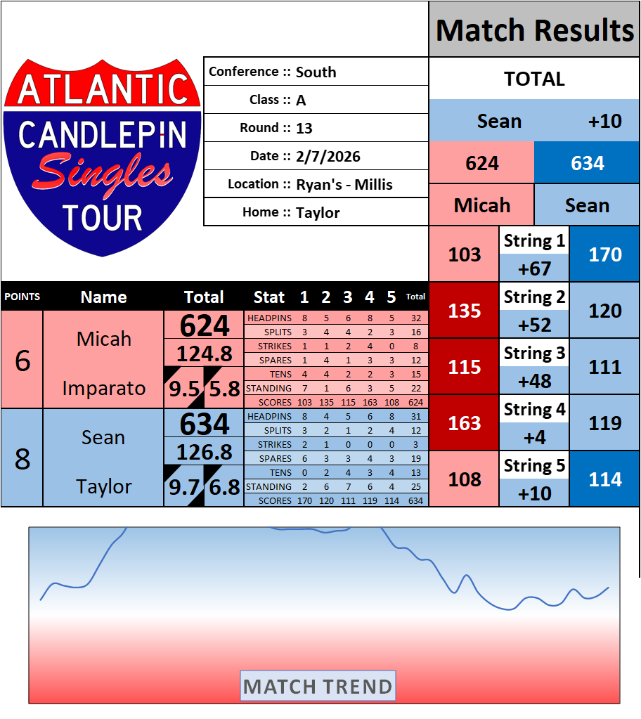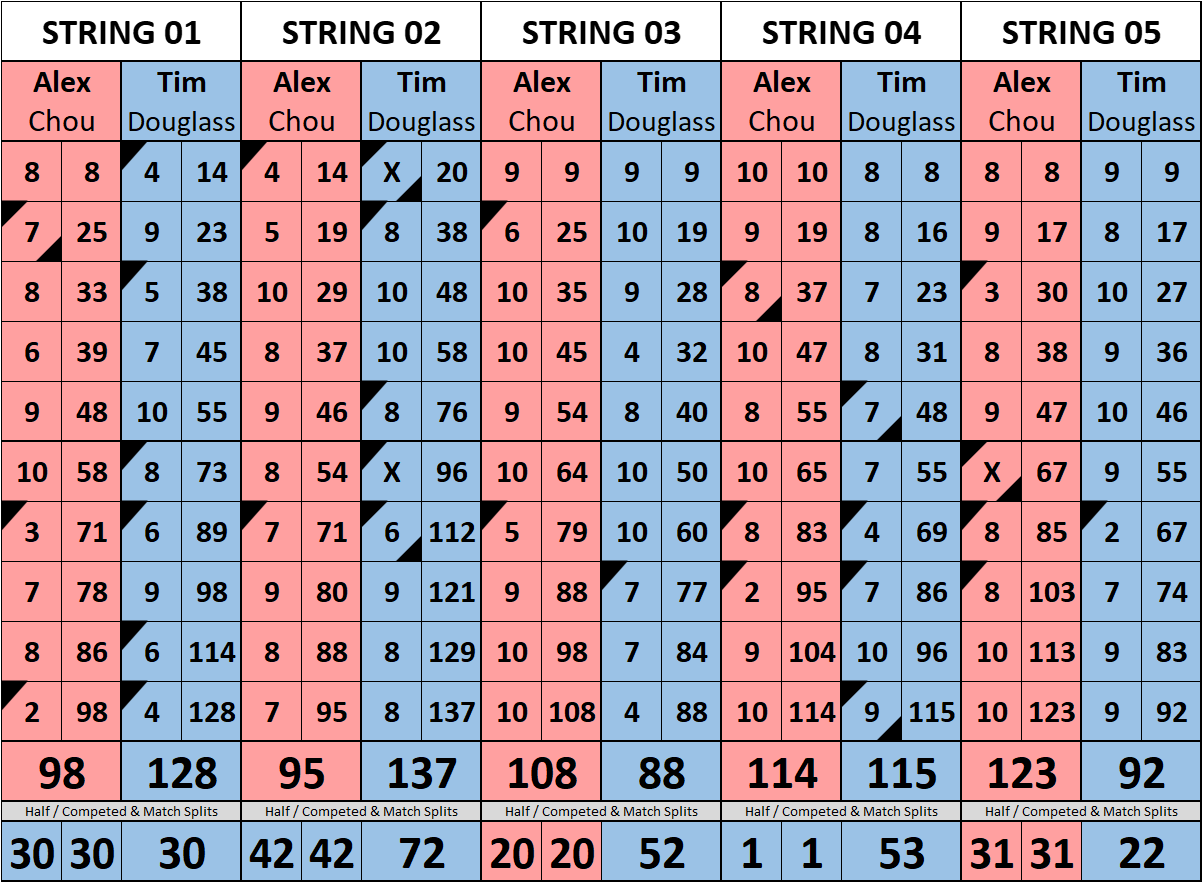 Browse the folder structure below to see all of the scoresheets – each is presented as two files, -1 and -2 where -1 is the Match Summary and -2 is the Scoresheet. All matches are separated by conference (North, South, West), and class (A, B, C, D, E). They are then sorted by Round # and named after the Home Bowler.