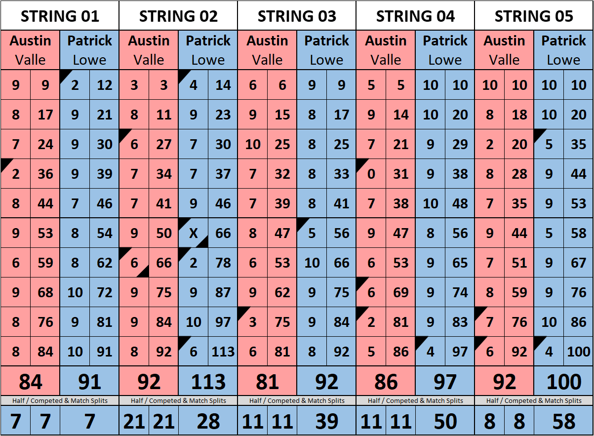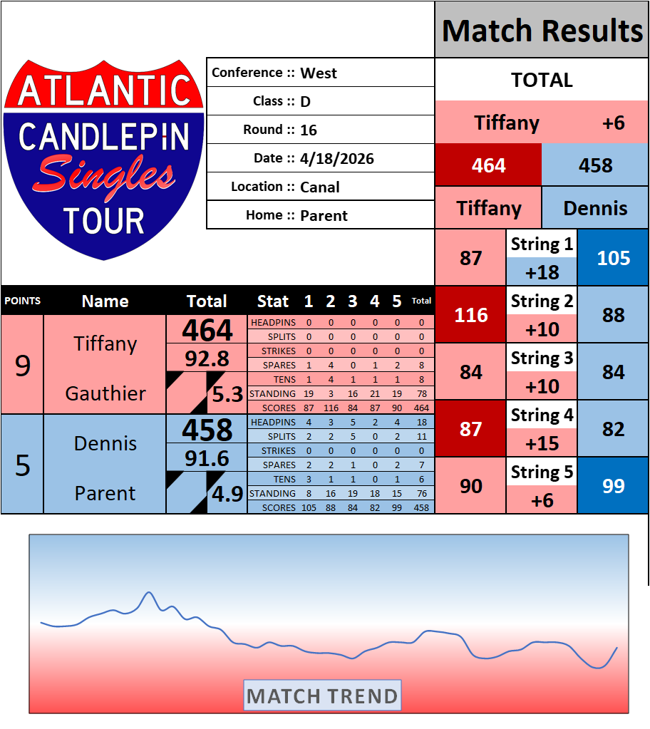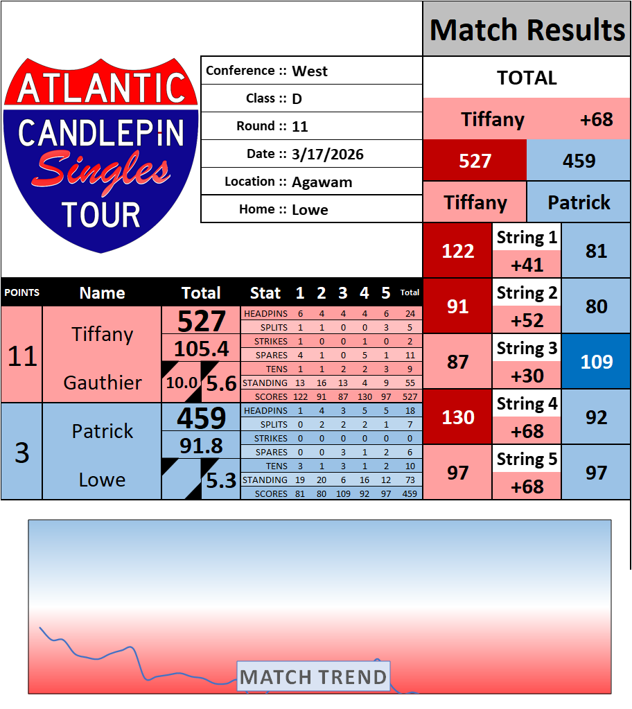 Browse the folder structure below to see all of the scoresheets – each is presented as two files, -1 and -2 where -1 is the Match Summary and -2 is the Scoresheet. All matches are separated by conference (North, South, West), and class (A, B, C, D, E). They are then sorted by Round # and named after the Home Bowler.