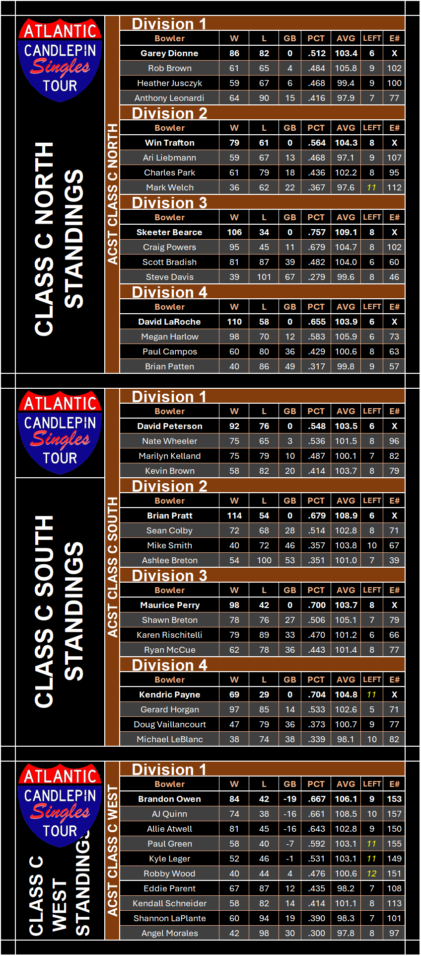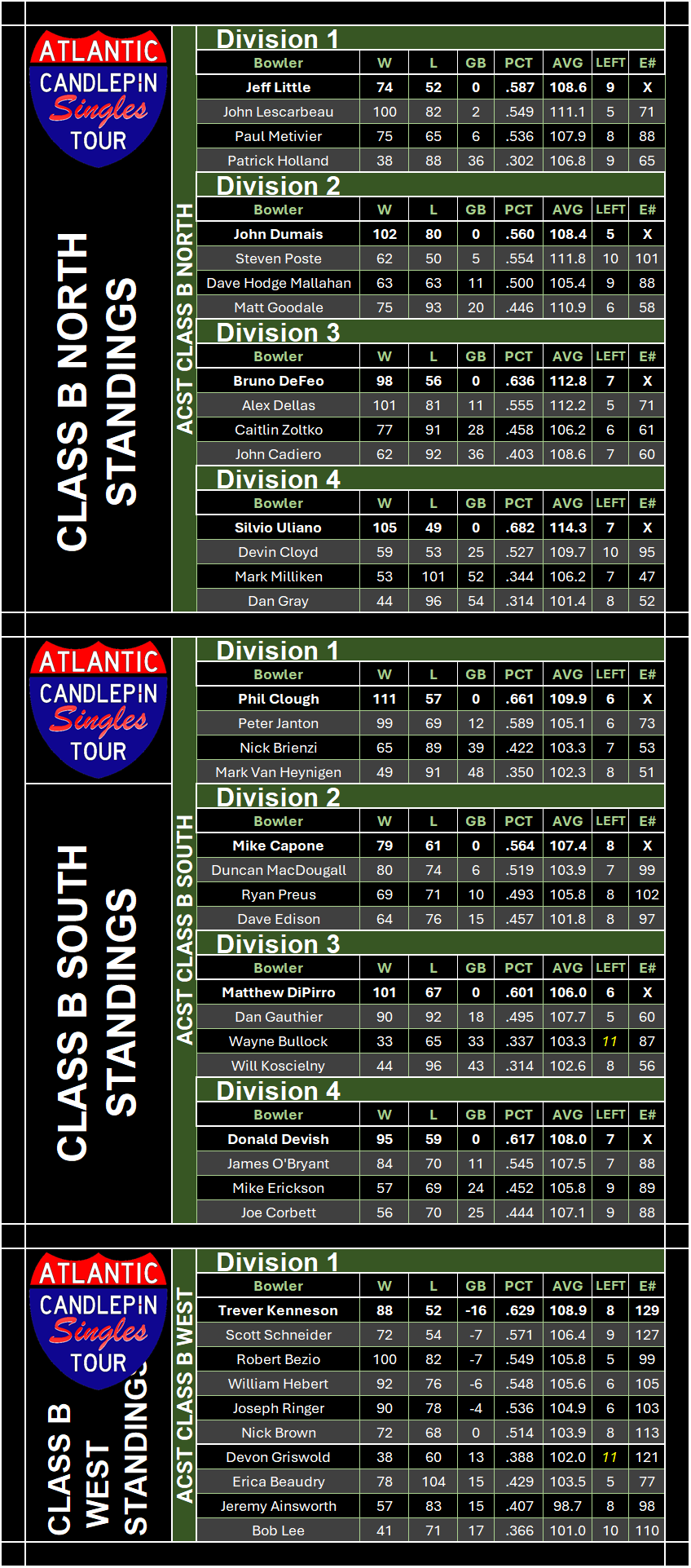 | Class A Standings | (Wild Card) Class B Standings | (Wild Card) Class C Standings | (Wild Card) Class D Standings | (Wild Card) Class E Standings |